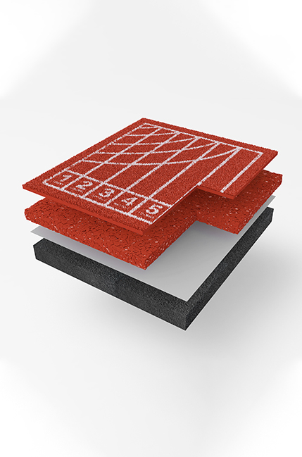 透氣型塑膠跑道是由底涂、彈性顆粒中層、面層組成的運動場地。底涂為單組分聚氨酯膠黏劑,與空氣中的濕氣反應(yīng)固化;彈性顆粒中層由 PSV-211 單組分專用膠黏劑與 EPDM 顆粒按照 1:6~1:7 的質(zhì)量比混合后攤鋪而成;噴顆粒面層由 PSV-302 噴顆粒面膠、膠粉、EPDM 顆粒按比例混合,攪拌均勻后,噴涂于彈性顆粒中層上固化而成。