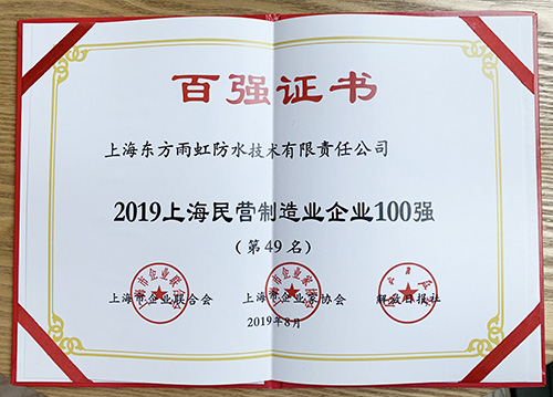 8月19日,由上海市企業(yè)聯(lián)合會(huì)、上海市企業(yè)家協(xié)會(huì)、上海市經(jīng)濟(jì)團(tuán)體聯(lián)合會(huì)和解放日?qǐng)?bào)社聯(lián)合主辦的“2019上海百?gòu)?qiáng)企業(yè)發(fā)布會(huì)”在上海召開。上海東方雨虹憑借出色的業(yè)績(jī)表現(xiàn)和優(yōu)質(zhì)的產(chǎn)品服務(wù)口碑,位列“2019上海民營(yíng)制造業(yè)企業(yè)100強(qiáng)”榜單第49名,“2019上海制造業(yè)企業(yè)100強(qiáng)”榜單第70名。
