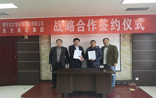 4月1日,東方雨虹與焦作大地安泰置業有限公司簽訂戰略集采合作協議。大地安泰置業有限公司財務總監申長軍、東方雨虹工建集團北方區豫西區域總經理陳志超、豫西區域城市經理張興明等出席。