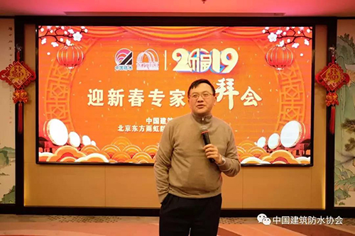 中國建筑防水協會秘書長、專家委員會主任委員朱冬青先生在致辭中分享了2018年行業里的大事:一是蔡昭昀專家及團隊榮獲國家科學技術進步獎二等獎,實屬行業首例;二是行業技能大賽,全國建筑防水行業(防水工)職業技能競賽的三位冠軍鐘友良、王巍等選手獲得“全國技術能手”稱號。最后,他向在座專家們恭賀新年,表達了美好祝愿。