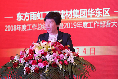 工建集團總裁張志萍女士對華東區能夠超額完成年度經營目標表示贊許。她指出,東方雨虹2018年確定了風控優先、合伙人優先、渠道優先、員工優先的四優原則,通過組織變革,有效提升了資源支持效率,2019需要給員工高度賦能、高度信任,從而確立更高目標,更大理想,讓華東區不僅勇于爭先,更要勇奪冠軍。
