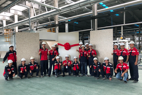 8月30日,東方雨虹蕪湖生產基地一體化板項目順利試機生產,并生產出第一張氟碳/多彩飾面板。