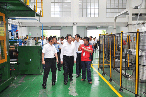 8月26日上午,徐州市委書記、市人大常委會主任周鐵根、徐州市市長莊兆林以及市委、市政府辦公室、沛縣、豐縣、睢寧縣等班子成員近100余人考察東方雨虹徐州生產(chǎn)基地。