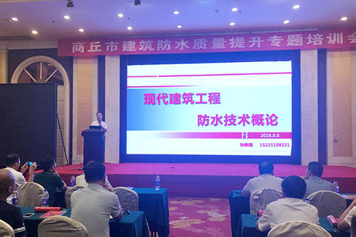 8月8日,商丘市舉辦建筑防水質(zhì)量提升專題培訓(xùn)會。商丘市工程質(zhì)量監(jiān)督站站長張彥峰、東方雨虹工渠事業(yè)部大鄭州技術(shù)副總工程師孫新磊出席會議。來自商丘市各縣區(qū)的質(zhì)監(jiān)站、建設(shè)、施工、監(jiān)理、檢測及有關(guān)單位負責人共300余人參加會議。