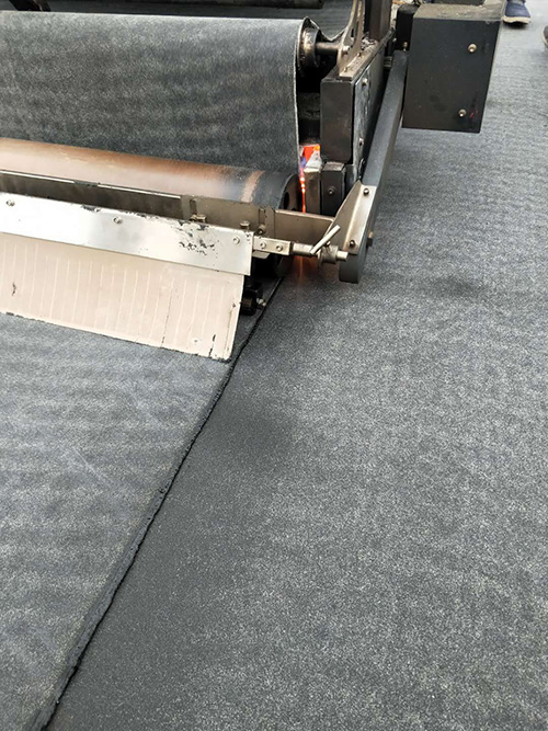 在此次項目中,東方雨虹推出的“虹人坦途”智能型熱熔防水卷材攤鋪機車得到了有效應用——其人工6倍以上的施工速度,適應任何基層的優良性能,烘烤卷材不過度不欠缺的智能控制,以及滿粘的施工效果,大大實現了提高功效、減少人工、強化施工質量和降低能耗等優異的技術特點。
