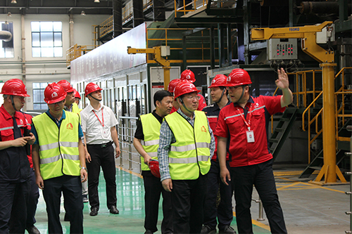 調研組由省政府研究室副主任劉西建帶隊,聯合省發改委、質檢局等部門專家,旨在進行陜西省防水行業轉型升級的專題研究。通過研究陜西省防水材料企業的發展情況和亮點,為政府通過產業升級、質量提升,淘汰落后產能,提升陜西省防水行業整體水平提供有力依據。 閆瀟彬對調研組詳細的介紹了東方雨虹的發展史、咸陽生產基地整體發展情況以及國內防水行業現狀等,并帶領調研組參觀了卷材車間、卷材庫房和涂料車間。