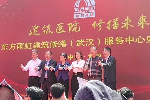 4月18日,東方雨虹建筑修繕(武漢)服務中心盛大開業。東方雨虹集團副總裁、建筑修繕技術有限公司董事長張志萍女士,總經理劉紹光先生,市場總監張勇先生等出席了剪彩儀式。