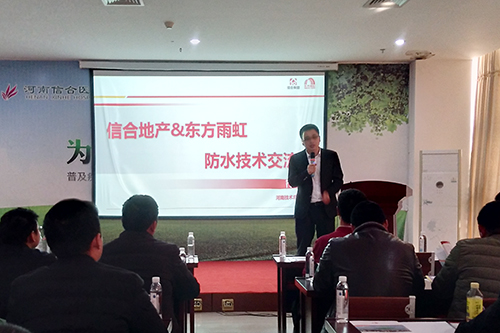 3月16日下午,東方雨虹與河南信合建設投資集團(簡稱“信合地產(chǎn)”)固始項目部舉辦以“深化合作,提高服務”為主題的防水系統(tǒng)技術交流會。