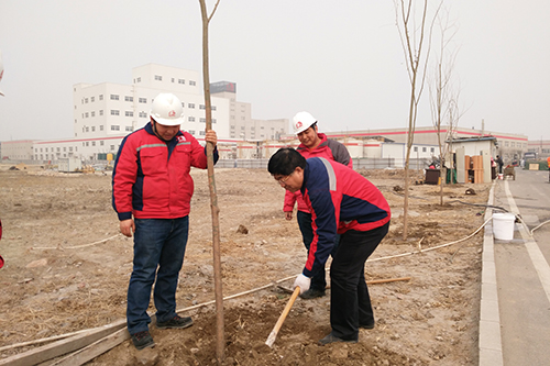 3月12日,是一年一度的植樹節(jié),唐山東方雨虹舉辦了以“樹立文明生態(tài)理念,推進園林工廠建設”為主題的植樹節(jié)活動。下午13:30由生產基地領導及職能人員30余人在基地的空地植樹40棵,以實際行動踐行東方雨虹“綠色工廠”的經營理念,為唐山生產基地再添新綠。