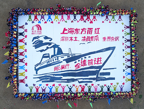會后,李建華女士向業(yè)務(wù)集團軍、工程集團軍授旗。授旗意味著責任、使命與承諾,全體將士必將全力以赴,恪盡職守,用實際行動捍衛(wèi)榮譽。同時,為了加強團隊間協(xié)同共進、充分激發(fā)團隊潛能,公司安排了“同心同行、鼓舞飛揚”非洲鼓活動及“同心同行、全速前進”團隊熔煉。短短2小時,團隊高效協(xié)同完成近300平米的帕斯卡巨畫,詮釋了人在一起叫聚會、心在一起叫團隊,團隊能量是無限的。