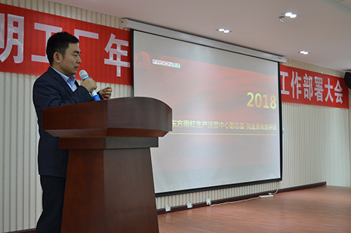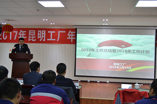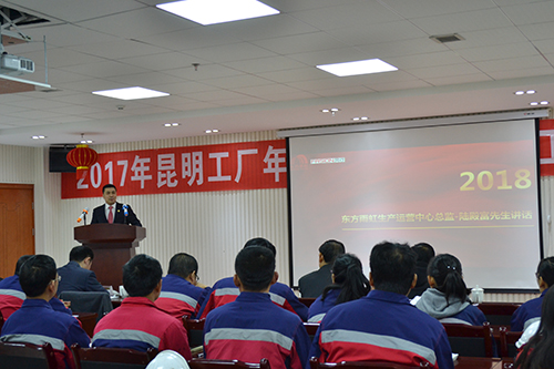 陸殿富先生作重要講話,他首先肯定了昆明生產(chǎn)基地在過(guò)去一年的變化與成長(zhǎng),隨后他要求生產(chǎn)基地全體人員要加強(qiáng)學(xué)習(xí),夯實(shí)各崗位的本領(lǐng),2018年昆明生產(chǎn)基地肩負(fù)重任,要從"產(chǎn)品質(zhì)量、成本管控、創(chuàng)新與成果"等方面進(jìn)行全面部署,希望生產(chǎn)基地全體員工腳踏實(shí)地,努力進(jìn)取,在2018年實(shí)現(xiàn)全面超越自我。