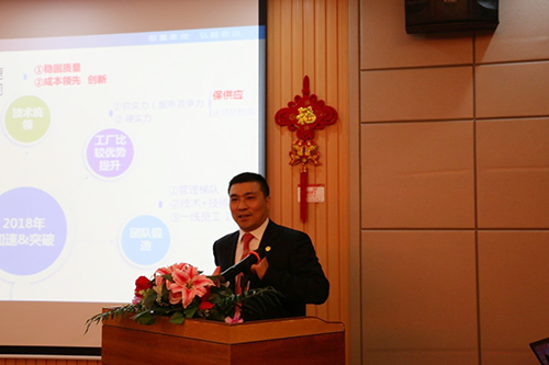 惠州生產(chǎn)基地廠長趙海濤先生從2017年指標(biāo)完成情況、安全環(huán)保、質(zhì)量管控、生產(chǎn)、技術(shù)創(chuàng)新、設(shè)備管理、精益管理、團(tuán)隊建設(shè)等方面做了總結(jié)發(fā)言,深入剖析2017年工作的得失,重點對2018年的工作做了安排和部署。他表示,2018年惠州生產(chǎn)基地將會充滿更多挑戰(zhàn),全體員工要化壓力為動力,變被動為主動,凝心聚力、拼搏向上、努力創(chuàng)新,贏戰(zhàn)2018。