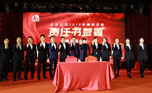 接著,對北京公司2017年度優(yōu)秀個人、團隊進行表彰頒獎。大會最后一項,由各部門簽署2018年度績效目標責任書。