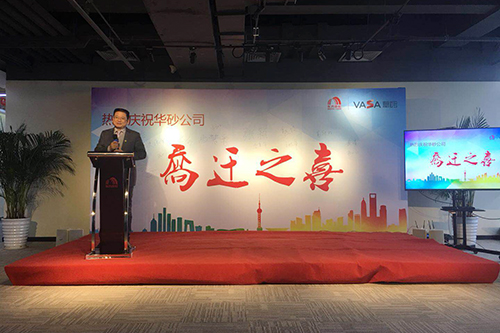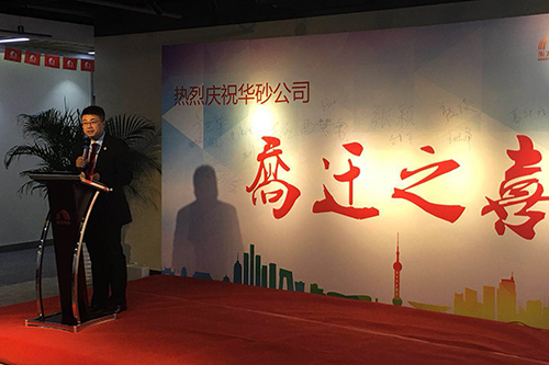 接著,由華砂公司董事長方世畢先生致辭,他感謝了前來祝賀的嘉賓,總結(jié)了華砂公司過去的工作并對接下來的發(fā)展方向做出重要指示,同時表明華砂總部搬遷到花橋是一個新的起點,華砂公司因砂而生、因砂而美,也必將因砂而走向世界。