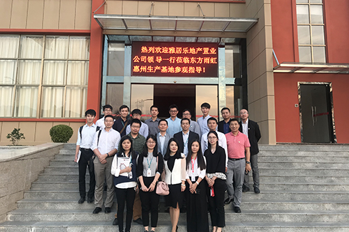 10月30日,雅居樂地產(chǎn)置業(yè)公司采購中心總經(jīng)理李守飛、工程總監(jiān)楊賢棟等一行15人考察東方雨虹惠州生產(chǎn)基地。