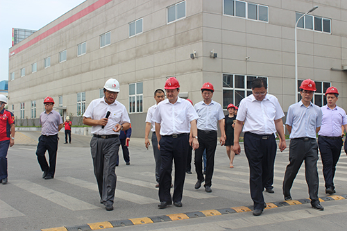 7月28日下午,為了了解唐山市重點企業的發展規劃及督導重大項目建設和轉型升級工作,唐山市副市長梁振江帶領市工信局、國土局、環保局等相關負責人到唐山東方雨虹參觀指導工作。