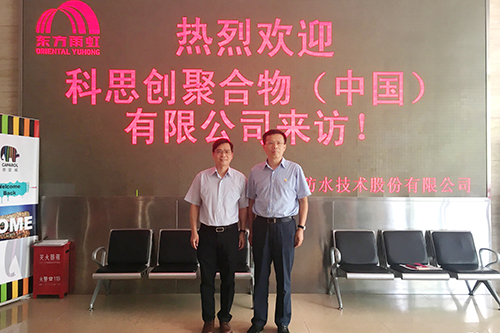 8月2日上午,科思創涂料、粘合劑及特殊化學品業務部亞太區高級副總裁鐘小斌先生一行專程訪問東方雨虹。東方雨虹總裁向錦明先生熱情地接待了鐘小斌先生一行,雙方就進一步合作展開深度交流。
