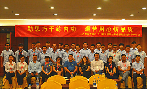 7月29日,廣東東方雨虹在廣州涵天大酒店召開工程系統(tǒng)2017年年中表彰暨培訓(xùn)會(huì)議。廣東東方雨虹董事長(zhǎng)兼總經(jīng)理?xiàng)詈瞥?、常?wù)副總經(jīng)理孫福琴、副總經(jīng)理劉長(zhǎng)美、總經(jīng)理助理張舜苗、王愛超及工程部、質(zhì)安部全體員工參與本次會(huì)議。