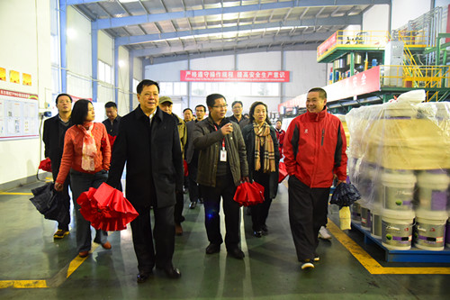 12日下午,參觀組來(lái)到岳陽(yáng)市云溪區(qū)綠色化工產(chǎn)業(yè)園,岳陽(yáng)東方雨虹廠長(zhǎng)向鋒代表公司熱情接待了一行。一行認(rèn)真聽(tīng)取了向鋒匯報(bào)東方雨虹2016年的總體經(jīng)營(yíng)情況,隨后參觀了岳陽(yáng)工廠水性涂料車間及高分子卷材車間,深入了解了涂料、高分子產(chǎn)品的施工工藝、現(xiàn)場(chǎng)操作流程及重大工程應(yīng)用情況。