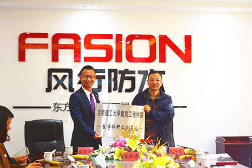 12月15日下午,風(fēng)行防水與昆明理工大學(xué)建筑工程學(xué)院合作簽約儀式在風(fēng)行防水安寧生產(chǎn)基地舉行。昆明理工大學(xué)建筑工程學(xué)院院長(zhǎng)郭榮鑫、院黨委書(shū)記馬應(yīng)良、副院長(zhǎng)王志浩、院黨委副書(shū)記戴煒、辦公室主任王薇等有關(guān)領(lǐng)導(dǎo)出席簽約儀式。