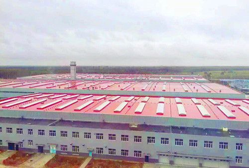 該項(xiàng)目位于黑龍江省齊齊哈爾市,東方雨虹承擔(dān)其一期農(nóng)機(jī)具聯(lián)合廠房、輪拖聯(lián)合廠房及調(diào)試車(chē)間屋面防水工程,施工面積共計(jì)約七萬(wàn)平方米,于2011年9月竣工。 為滿(mǎn)足業(yè)主方整體廠房設(shè)計(jì)規(guī)劃色調(diào)的需求,東方雨虹TPO事業(yè)部特意為此項(xiàng)目定制了與其企業(yè)文化相吻合的緋紅色熱塑性聚烯烴(TPO)防水卷材,是當(dāng)時(shí)國(guó)內(nèi)較早的彩色TPO項(xiàng)目,如今五年過(guò)去了,依舊亮麗如新。