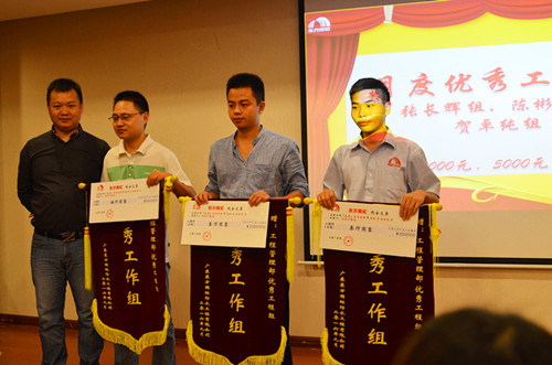 10月22日,以“矢志不移,奮力沖刺”為主題的廣東東方雨虹第三季度業(yè)務(wù)&工程表彰動員大會在涵天酒店舉行。廣東東方雨虹常務(wù)副總經(jīng)理孫福琴、總工程師周子鵠、總經(jīng)理助理張舜苗、總經(jīng)理助理王超以及業(yè)務(wù)系統(tǒng)、工程系統(tǒng)共計100多名員工出席了此次會議。 為及時表彰績優(yōu)者,增強(qiáng)員工、團(tuán)隊榮譽感,傳遞正能量,本次會議頒發(fā)了業(yè)務(wù)系統(tǒng)優(yōu)秀銷售團(tuán)隊獎、維護(hù)獎、開拓精英獎及工程系統(tǒng)優(yōu)秀工程組獎、施工管理精英獎、施工回款獎等6個獎項,共計4個優(yōu)秀團(tuán)隊、6位員工獲得了獎勵。會上,常務(wù)副總經(jīng)理孫福琴和總工程師周子鵠結(jié)合表彰情況作動員發(fā)言,表示業(yè)務(wù)工程不分家,兩大系統(tǒng)要換位思考,相互配合,與公司共成長、同發(fā)展。