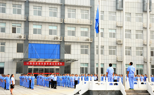 8月18日,天鼎豐迎來了5周年的生日,公司舉行了隆重的慶典活動,共同慶祝天鼎豐公司成立五周年。 公司300余名員工共同見證了這一重要時刻。慶典活動于6點58分開始,鳴禮炮、奏國歌、司歌,全體人員在國旗、司旗下行注目禮。隨后,天鼎豐董事長聶松林發(fā)表五周年致詞,回顧了天鼎豐過去5年來的發(fā)展歷程:“五年來,天鼎豐從一片荒蕪之地建設(shè)成為胎基布行業(yè)突出企業(yè),公司的團隊建設(shè)、品牌建設(shè)、人力資源建設(shè)、市場外聯(lián)、社會責任等基礎(chǔ)工作都非常突出;設(shè)備管理、現(xiàn)場管理、成本管理、產(chǎn)品質(zhì)量等都走在了行業(yè)的前列。公司的飛速發(fā)展離不開全體員工的辛勤工作,離不開員工家屬的默默支持,更離不開供應(yīng)商、客戶以及各級政府和社會各界朋友的鼎力相助,在此要表達對大家的衷心感謝,是大家的不懈努力,成就了今天的天鼎豐。”