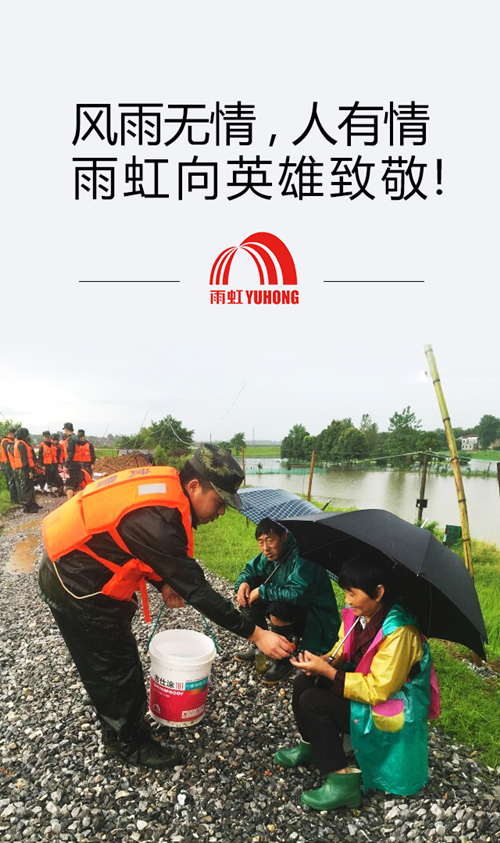 近日,南方多地區(qū)連降暴雨,安徽、武漢等地因長江水位上漲,遭遇嚴重的洪澇災(zāi)害,東方雨虹決定用實際行動助力受災(zāi)地區(qū),7月1日起至7月31日,【雨虹天貓旗艦店】的每筆訂單中將撥款50元用作湖北、安徽等受災(zāi)地區(qū)救援物資專項基金。