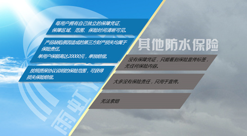 2016年4月7日,雨虹防水聯(lián)合專(zhuān)業(yè)的文津國(guó)際保險(xiǎn)經(jīng)紀(jì)公司歷經(jīng)109天推出防水行業(yè)保險(xiǎn)——雨虹家裝系統(tǒng)防水服務(wù)責(zé)任保險(xiǎn),保險(xiǎn)保障由中國(guó)人保承保。