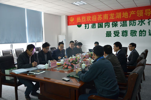 2016年3月16日,龍湖集團(tuán)蘇南公司工程部總監(jiān)胡宏偉、招標(biāo)中心負(fù)責(zé)人王德倫、工程管理中心負(fù)責(zé)人黃衛(wèi)軍、工程中心土建經(jīng)理王學(xué)建、研發(fā)經(jīng)理孔蒙一行五人參觀江蘇臥牛山公司,對(duì)臥牛山公司的建筑保溫技術(shù)水平及在施工項(xiàng)目進(jìn)行參觀考察。江蘇臥牛山公司董事長(zhǎng)、總經(jīng)理劉志榮、總工程師花海東、副總經(jīng)理劉和軍、副總經(jīng)理張建新、副總工程師成時(shí)亮負(fù)責(zé)接待并陪同考察。 上午10點(diǎn),蘇南龍湖地產(chǎn)相關(guān)領(lǐng)導(dǎo)一行參觀公司之后,前往技術(shù)中心展廳對(duì)公司的技術(shù)水平做更深一步的了解。技術(shù)展廳的考察包括參觀保溫主材樣板、施工樣板、外墻涂料樣板以及建筑保溫系統(tǒng)展示墻等,臥牛山公司總工程師花海東向龍湖地產(chǎn)相關(guān)領(lǐng)導(dǎo)全面介紹了建筑保溫多種系統(tǒng)解決方案。