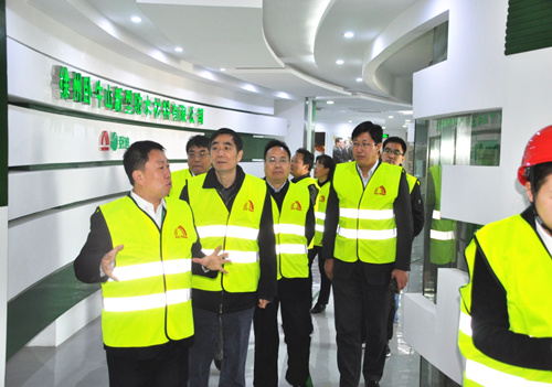 3月16日,江蘇省經信委副書記、副主任戴躍強,產業投資處處長黃萍,電力能源處處長吳雷,新沂市常委婁可亮、發改經濟委主任王曉東等一行考察東方雨虹徐州生產基地。