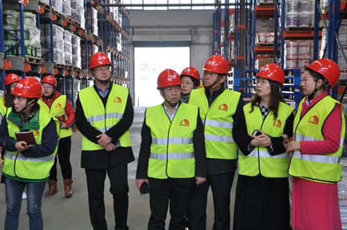 徐州生產基地廠長陽文新簡要介紹了公司工業旅游的基本設想,并希望得到旅游局的支持和專業指導,然后帶領考察組一行重點觀摩了基地展廳、屋頂花園綠色種植系統、防水科普長廊、現代化穿梭式貨架倉儲物流系統、各個智能化生產車間、功能齊全的質量檢測中心、民建實操施工訓練場、景觀河防滲漏系統等現場。