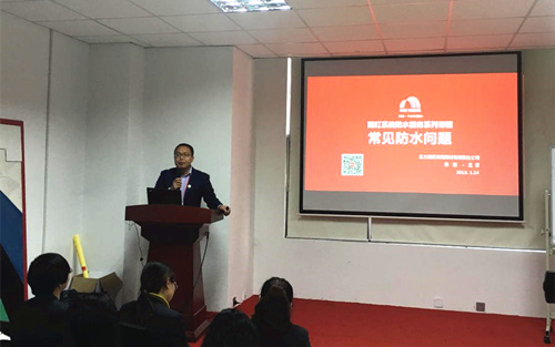 東方雨虹系統(tǒng)防水服務(wù)就是踐行國家室內(nèi)防水標準的服務(wù),將東方雨虹優(yōu)質(zhì)的產(chǎn)品,通過標準化施工,以系統(tǒng)防水滿足客戶不漏水的需求。以全程服務(wù)給客戶愉悅的體驗,并且樹立東方雨虹品質(zhì)至上,服務(wù)為本的企業(yè)形象。徐斌老師把理論結(jié)合到實際案例中進行講解分析,傳授豐富的實踐經(jīng)驗,通過通俗易懂的語言,為學員闡述如今常見的防水問題;對于種種防水問題的專業(yè)解讀使學員受益匪淺。