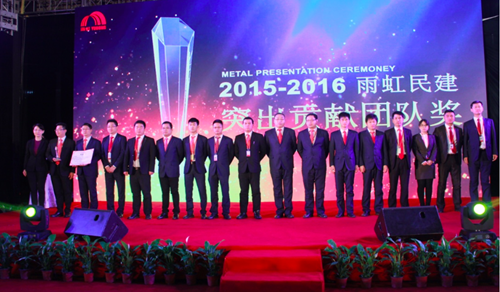 2016年1月4日,在東方雨虹民用建材公司2015年工作總結暨2016年工作部署大會第二天,舉行了東方雨虹民用建材公司2015年度表彰大會暨2016年責任狀簽訂儀式。 2015年度表彰大會上,東方雨虹民用建材公司總經理熊俊首先致辭,他表示,表彰大會的意義,是激勵大家為公司壯大發展投入更多精力,我們在向獲得嘉獎的同事表示祝賀的同時,也要以他們為榜樣。東方雨虹民用建材公司西南片區總監張方飛公布了民建職能系統優秀新人獎獲獎名單,拉開了2015年度表彰大會的序幕。通過考量民用建材公司業務、職能人員2015年度工作業績、貢獻等,共評選出優秀新人、優秀管理、優秀團隊、創新團隊等十余個獎項。