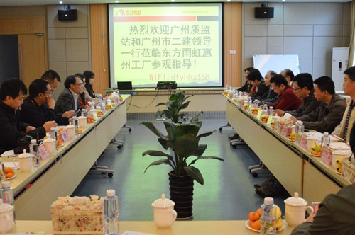 12月3日、4日,東方雨虹惠州生產基地召開了《廣州市建筑工程施工工藝標準系列視頻》防水專輯工作啟動會。廣州市建設工程質量監督站站長廖集中、副站長張勇,廣州市第二建筑工程有限公司副總經理李俊華,廣東省建筑防水協會常務副會長瞿培華、秘書長夏展熙等領導蒞臨參觀。東方雨虹工程總監阮和章,廣東公司副總經理孫福琴、總工程師周子鵠、市場部經理余佩賢等人做了全程接待與陪同。