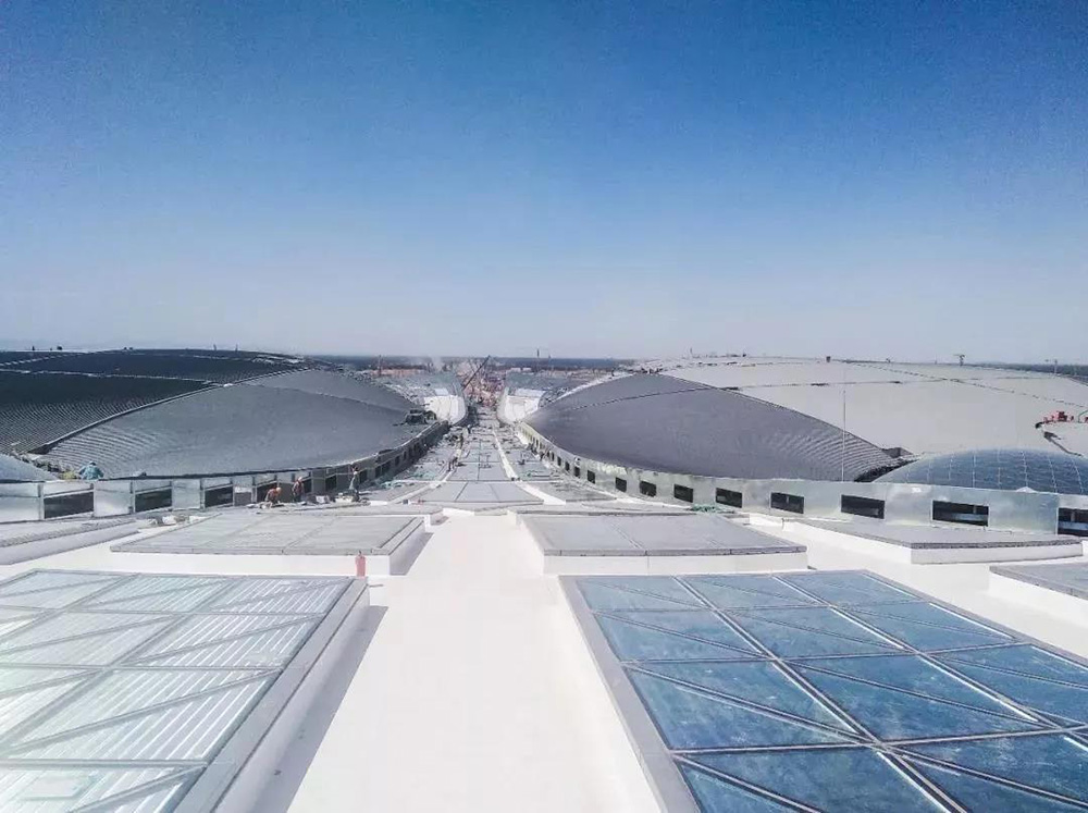 據(jù)悉,東方雨虹的產(chǎn)品及服務(wù)廣泛被應用于北京新機場的航站區(qū)“五指廊”、綜合服務(wù)樓及停車樓到飛行區(qū)、生活區(qū)的市政項目中。針對不同部位,東方雨虹采用定制化產(chǎn)品,航站樓主樓、指廊、停車樓屋面均采用增強型TPO高分子卷材;地下室底板、外墻頂板以及樁頭接縫位置采用SBS改性瀝青防水卷材;機庫地下采用預鋪反粘型TPO高分子卷材、自粘型TPO高分子卷材;地下管廊采用非固化+SBS改性瀝青防水卷材;樁頭、基坑、雨水池等重要防水部位應用的則是水泥基滲透結(jié)晶防水涂膜,最大程度地發(fā)揮產(chǎn)品優(yōu)勢。