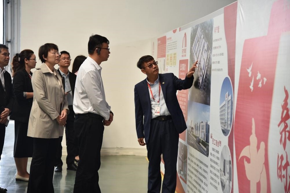 調研組一行先后前往高分子卷材車間、水性涂料及砂漿車間,實地考察廣州東方雨虹生產研發物流基地建設現狀及生產經營情況。期間,東方雨虹制造集團生產運營副總監兼廣州東方雨虹總經理胡國雄就廣州東方雨虹產品種類、產品性能、生產過程等情況作詳細介紹。