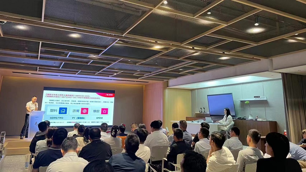 東方雨虹工建集團(tuán)江蘇公司總工程師徐方賓作《建筑底板防水新材料應(yīng)用分析》主題分享,他圍繞《建筑與市政工程防水通用規(guī)范》,系統(tǒng)分析底板HDPE、底板R類橡膠卷材、底板PY類瀝青卷材及底板其他類卷材預(yù)鋪反粘應(yīng)用的方案及優(yōu)劣勢(shì)。他強(qiáng)調(diào),通過(guò)改進(jìn)防水材料的抗穿刺、抗沖擊等性能及防水施工工法,可以去掉不必要的結(jié)構(gòu)層次,增加防水層的可靠性。