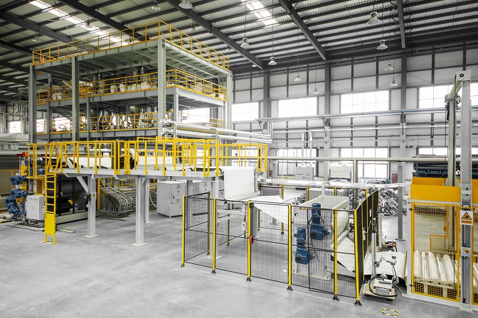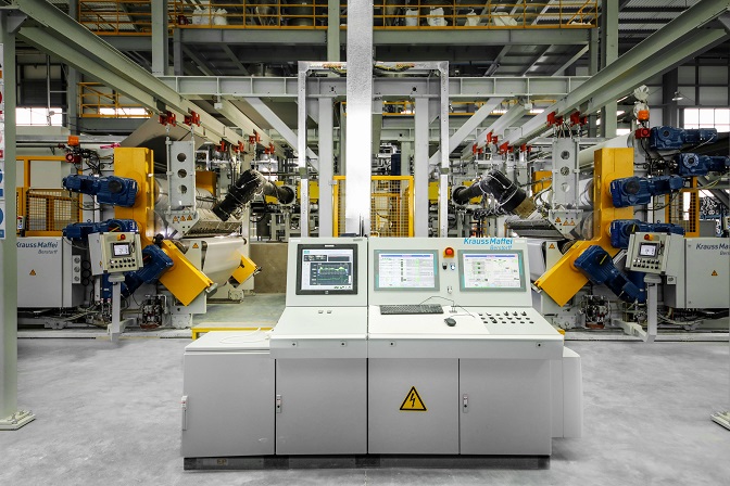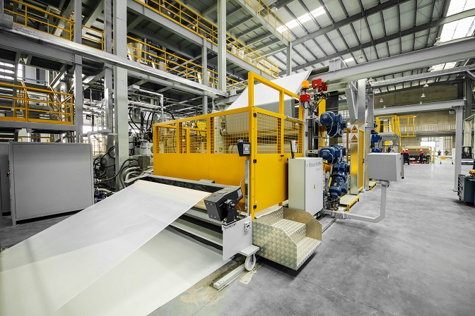 東方雨虹TPO生產(chǎn)線引進(jìn)自國際知名化工機(jī)械設(shè)備制造商克勞斯瑪菲貝爾斯托夫公司,工藝先進(jìn)、精準(zhǔn)連續(xù)、均勻穩(wěn)定、綠色節(jié)能、高效安全。