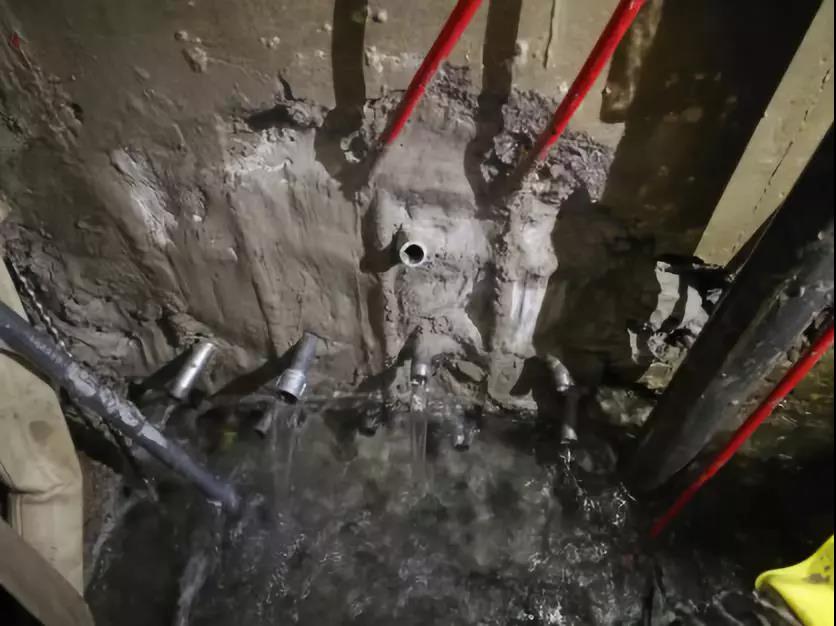2. 先采用結構外側固結灌漿或深層注漿等措施,最大程度地封堵住滲入水,或者最大程度地減少滲入水量,最大程度地降低滲水擴散量,然后再用堵漏1#進行堵水;