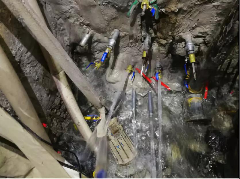 大量涌水和少量涌水的核心區別在于,分水和注漿阻水不同。少量涌水,可以直接采用CG-205注漿。因為水壓較小,反應時間充分(可適當延長混合路徑),可以直接堵住。而大量涌水,水壓很大。單純的CG-P205根本來不及反應就會被沖走。