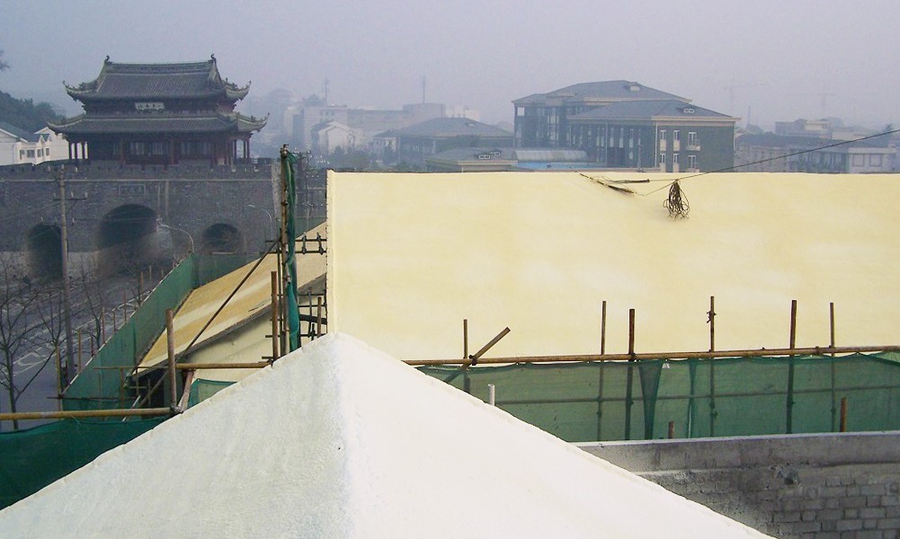 越大屋面保溫防水一體化系統,由噴涂硬泡聚氨酯保溫防水一體化材料與保護面層構成。通過現場噴涂工藝,在屋面形成連續、無接縫的殼體,有效消除冷熱橋效應,實現保溫防水一體化功能。