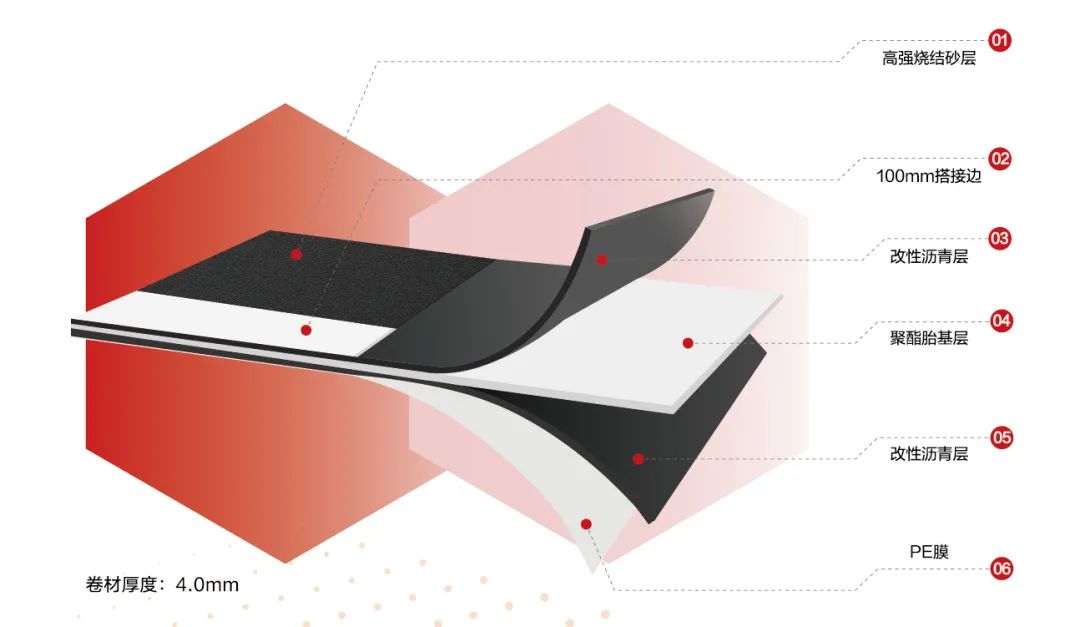此外,卷材可與東方雨虹TZH特種非固化橡膠瀝青防水涂料/太空堡SBS改性瀝青防水卷材/PMB-741等配套使用,滿足更高防水等級(jí)設(shè)防要求。